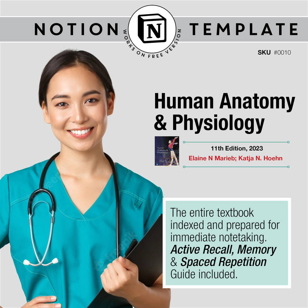 A pre-indexed Notion Template of "Human Anatomy & Physiology 11th Edition, 2023" (Written by Elaine N Marieb; Katja N. Hoehn and published by Pearson) for immediate notetaking in NOTION. Works on the free version.