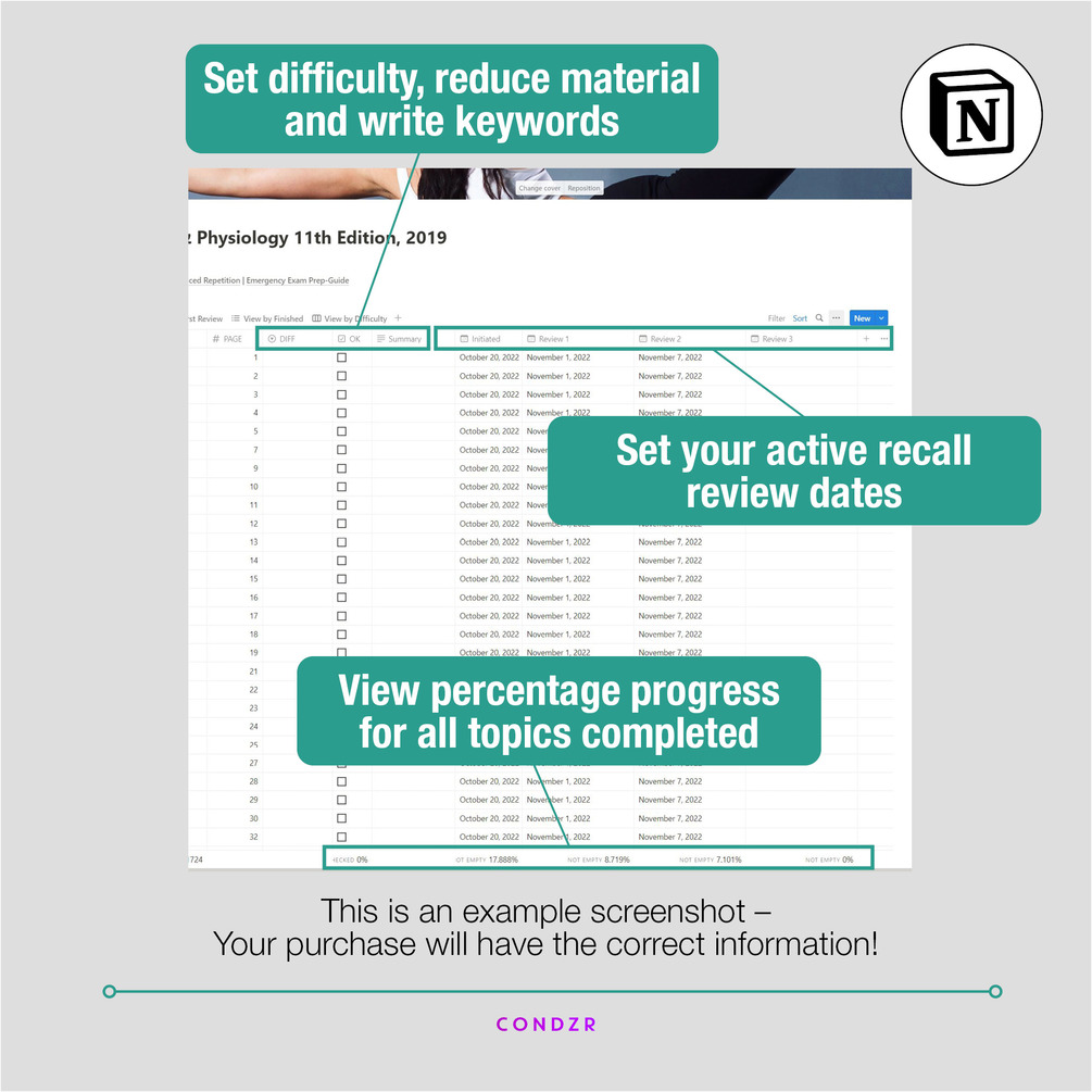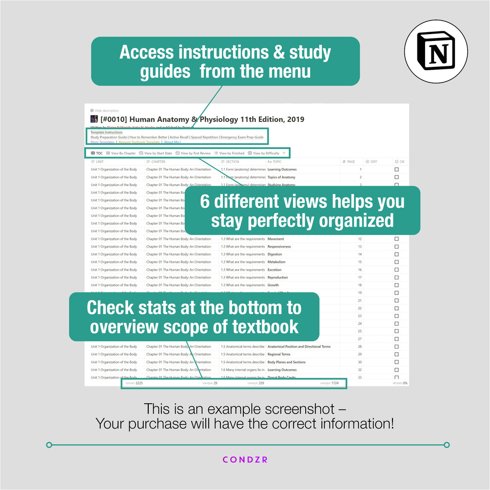 A pre-indexed Notion Template for immediate notetaking in NOTION. Meaning - The entire textbook's Table of Contents with all units, chapters and individual topics already listed in database format. Every individual Topic has its own page, ready for your notes and summaries. 6 different views helps you organize your studying to perfection. Active Recall and Spaced Repetition Guide included.