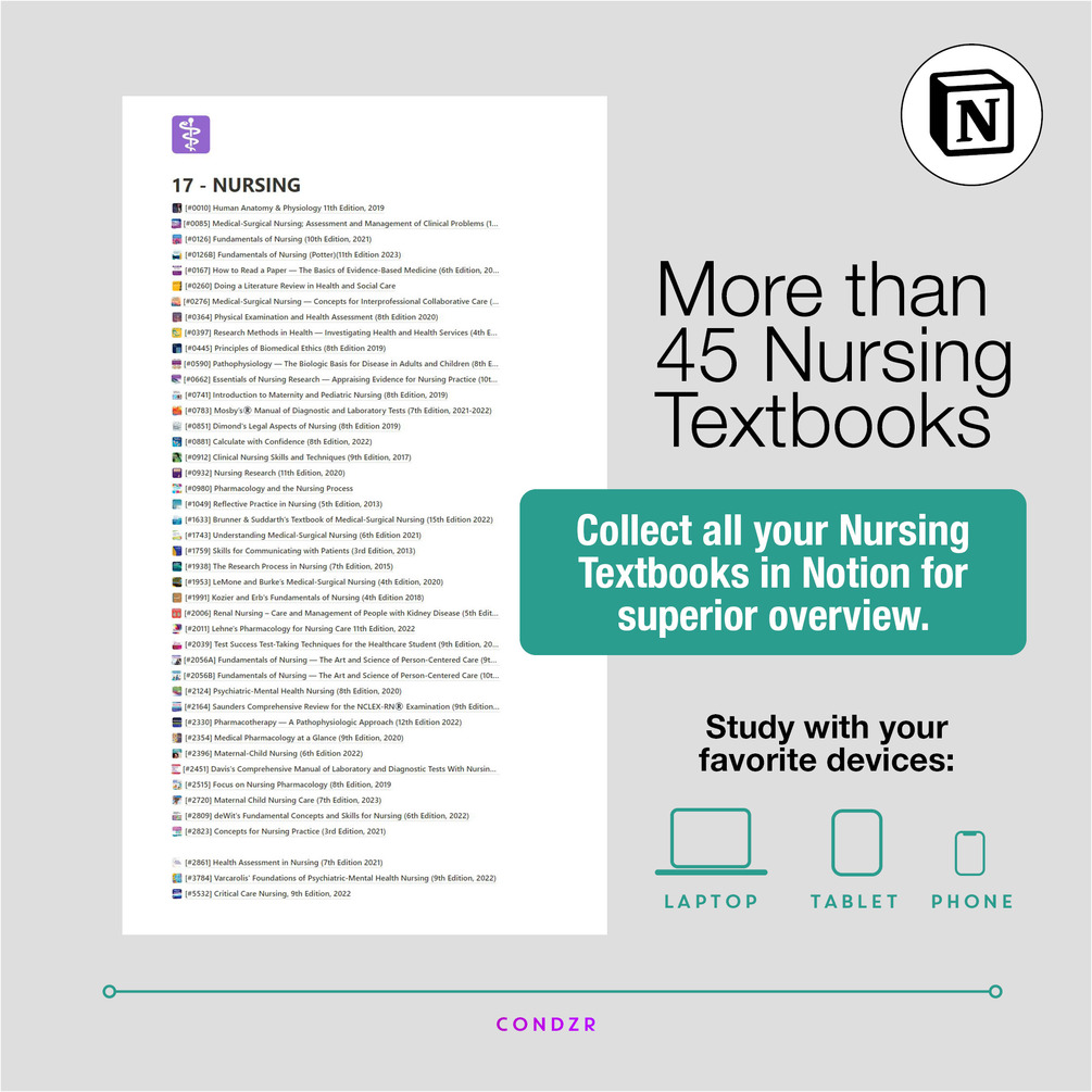 Don't miss - More than 40 of the most frequent Nursing Textbooks available, Collect your Nursing textbooks in Notion for superior overview. Ask if you wish your textbook to be indexed to Notion and I fix it!